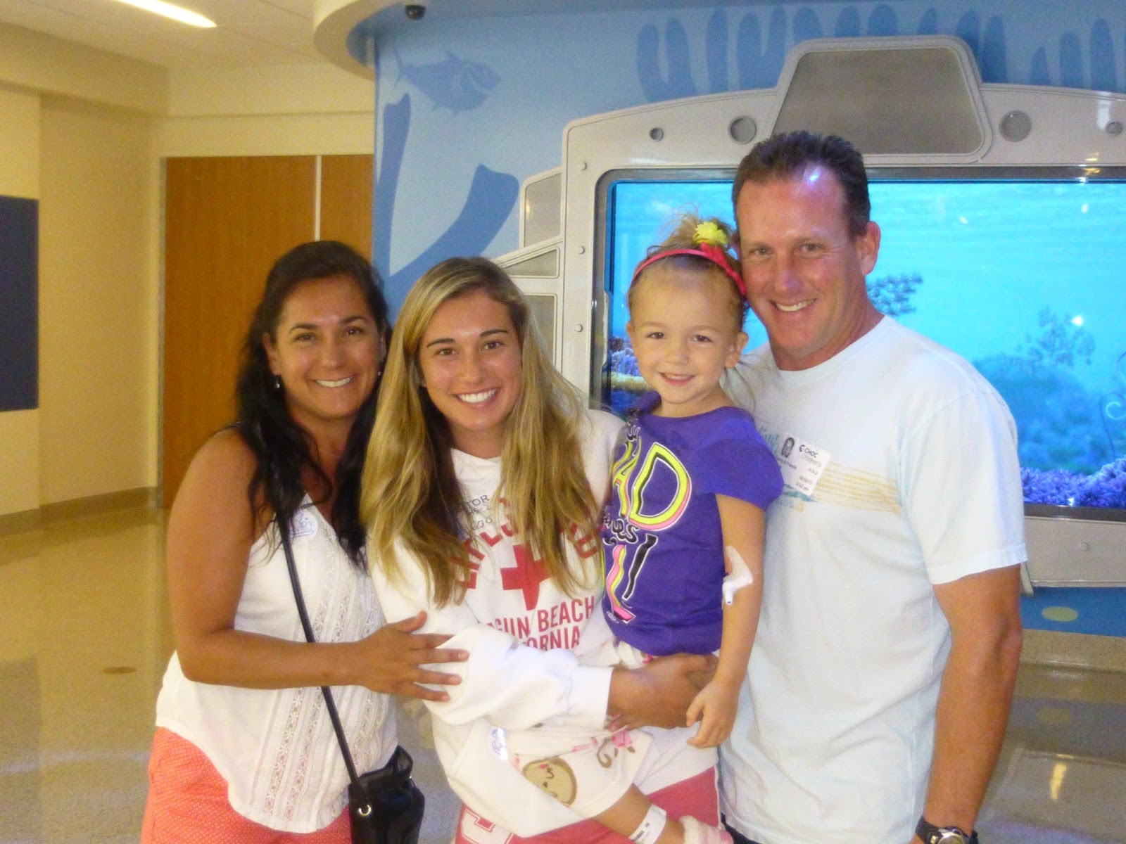 Lilly's stay at CHOC (Children's Hospital of Orange County) started on the last Saturday in June. At about 8am I was cleaning the house for my side of the family 'family day' when I thought Lilly was throwing up, I know her sound. I ran into my room and asked her if she was going to throw up and she said yes. I grabbed the 'throw up bowl' and headed back to my room. She was not moving and I desperately tried to get her to walk and talk but could not. Her beautiful eyes went to the right side and I knew something was wrong. I grabbed her and the phone. I dialed 911 on my way to the living room to place her on the ground. While I was talking to the dispatcher and giving a continuous status on my own daughter....this is what was happening.....I laid her on her left side, she would get stiff, she would then throw up, her eyes constantly went to the right side, and he was repeating the word 'like' over and over, then stiff, and her skin turned pale. I thought she was dying from a stroke. While trying to keep it together for the 5 minutes it took the firemen and ambulance to reach us (they are only .5 miles away...pissed me off) Emma was still asleep, but Drew was watching the beginning of this. I asked him to run and get neighbors, but none answered the door. Help finally got to us and off we were to the hospital. Luckily when the sirens were heard people from our street people came over and grabbed Drew and Emma for me. I also have to share that they were in my room by then and did not see the worst of Lilly. I called Derek and told him where we were going. One of the hardest conversations.